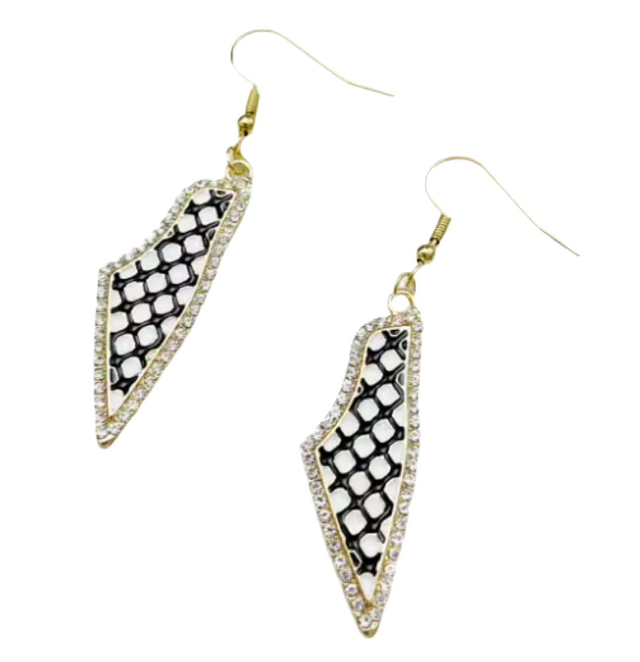 Disse øredobbene er formet som kartet over Palestina og dekorert med glitrende stener som gir en elegant finish. Lette og behagelige å bruke, men samtidig kraftfulle i sitt budskap – perfekt både til hverdags og fest.